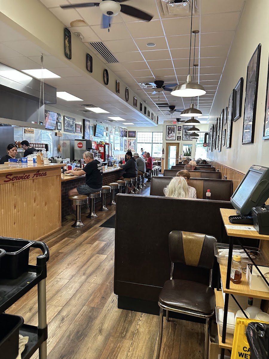The vibe here leans into a retro diner aesthetic, with counter seating that invites you to watch a steady flow of familiar faces and day-to-day activity, adding to a sense of local rhythm. It’s not overly spacious inside, and when busy, a handful of outdoor benches provide a spillover waiting area — a detail that hints at both its steady popularity and the transient nature of many diners.